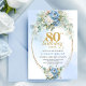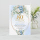 Elegant Dusty Blue Peonies Gold Boho 80th Birthday Invitation