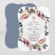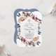 Romantic, elegant design featuring delicate watercolour dusty blue, misty rose flowers bouquet, gorgeous divider, a semi-transparent shape and on the back a navy blue background and the same divider. Use Personalise tool to add your info. For matching items, please, visit my Baptism/Christening Celebration Collection.
