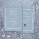 Elegant geometric lines frame your personalised wedding information set in chic typography on a dusty bluebackground. With your details and wedding website QR code on the reverse. Designed by Thisisnotme©