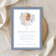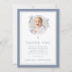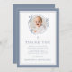 Elegant Dusty Blue Religious Baptism Photo Thank You Card.