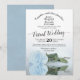 This beautiful invitation is designed for couples who have decided to take their weddings online due to the ongoing pandemic. It features a gorgeous design with lacy script calligraphy a single long stemmed dusty blue or light powder blue coloured rose reflecting in a pool of water. Wonderful way to invite your friends and family to share in your special day, even if circumstances prevent a physical gathering.