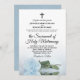 Elegant Dusty Blue Rose Modern Catholic Wedding Invitation