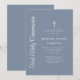 Elegant Dusty Blue Script Boy First Communion Invitation