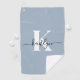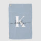 This simple, modern golf towel with your first name in a trendy script font in black and your first initial in a modern cap font in white on dusty blue is perfect for you.  It's stylish and trendy and yet very classic. It's unique - like you!  Get a couple so you always have a clean one on hand.