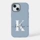 Elegant Dusty Blue Script Monogram iPhone 15 Case