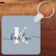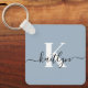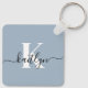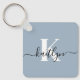 Elegant Dusty Blue Script Monogram Key Ring
