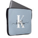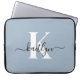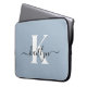 Elegant Dusty Blue Script Monogram Laptop Sleeve