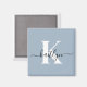 This simple, elegant dusty blue 2" square magnet with your first name in a trendy script font in black and your first initial in a modern cap font in white is perfect for you. It's stylish and trendy and yet very classic. It will look fabulous on your file cabinet, refrigerator, desk.