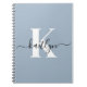 This simple, elegant dusty blue 6.5 x 8.75 spiral notebook with your first name in a trendy script font in black and your first initial in a modern cap font in white is perfect for you. It's stylish and trendy and yet very classic. It will come in handy in so many situations. Perfect for work, home, school, journalling.