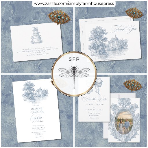 Elegant Dusty Blue Toile French Manor Photo Save The Date