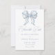 Make your wedding timeless with this elegant dusty blue vintage toile wedding save the date design. Featuring a detailed elegant bow sketch with a regal crest holding your photo on the back, it is perfect for a sophisticated ceremony. This classic look adds a refined touch to your historic home or garden celebration. Created by Simply Farmhouse Press.
