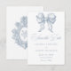 Make your wedding timeless with this elegant dusty blue vintage toile wedding save the date design. Featuring a detailed elegant bow sketch with a regal crest on the back, it is perfect for a sophisticated ceremony. This classic look adds a refined touch to your historic home or garden celebration. Created by Simply Farmhouse Press.