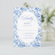 Elegant Dusty Blue Toile Roses Wedding RSVP Set