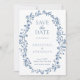 Announce your special day in a sophisticated style with our Elegant French Blue Vintage Victorian Floral Wedding Save the Dates. Crafted with an intricate floral design and a timeless French blue colour palette, these cards are a perfect blend of classic and contemporary aesthetics. The front of the card features the essential details of your event, adorned with an exquisitely beautiful floral border. On the reverse, an elegant complementary floral pattern. Embellish your wedding announcement with an elegant touch that sets the tone for your big day!