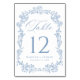Elegant Dusty Blue Victorian Floral Wedding Table Number
