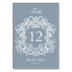 Elegant Dusty Blue Vintage Crest Wedding Table Number