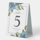 Unique dusty blue watercolor flowers wedding table tent numbers. !!! Change the number for each table that you need and add one at a time to your cart !!!