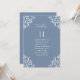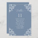Elegant Dusty Blue Wedding Seating Chart Cards: Use these vintage, classic table lists for your seating chart at your wedding or event. This design features the word "Table" in an elegant calligraphy with an ornate vintage corners design for a luxe look. It's set in dusty blue / blue grey / slate blue, but you can change the colour to anything you like! Just click "customise more" and click on the element to change the colour.