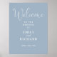This dusty blue elegant script wedding welcome sign can be personalised with all your special wedding day information. Designed by Thisisnotme©