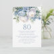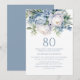 Elegant Dusty Blue White Floral 80th Birthday Invitation