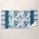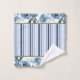 Elegant blue botanical stripes are the perfect adornment for a master or guest bathroom. Beautiful blue watercolor roses and foliage arrangements are combined with a pattern of many blue coloured stripes in this design. The set includes one bath towel, one hand towel, and one washcloth. This lovely set, which can be personalised with a name, is ideal for a Mother's Day, birthday, or housewarming gift!
