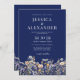 Elegant Dusty Blue Wildflowers Navy Wedding Invitation