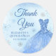 Elegant Dusty Blue Winter Snowflake Quinceañera Thank You Sticker