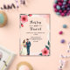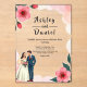 This elegant watercolor floral wedding acrylic invitation is perfect for a modern wedding. The romantic design features a sleek watercolor floral frame with a bride and groom illustration and black calligraphy on a white background.