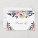 Dusty peach pink and dusty blue rose floral Wedding RSVP card.