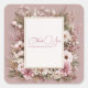 Embrace a world of rustic romance and sophisticated charm with this stunningly beautiful floral thank you sticker. The design features a solid, muted dusty pink background, providing a warm, elegant canvas. A lush, realistic bouquet of flowers in a soft, sophisticated palette of dusty pink, pale blush, and cream beautifully frames a central panel. The arrangement is rich with texture, featuring detailed chrysanthemums, delicate anemones, and soft roses, all interwoven with dried botanicals and dusty sage green foliage. At the centre, a crisp, off-white, paper-textured rectangle provides a classic space for your message. This panel is enclosed by a minimalist, thin double-line gold border, adding a final touch of understated elegance. These stickers are perfect for businesses with a rustic, romantic, or boho-chic aesthetic, such as boutique florists specialising in dried arrangements, wedding planners with a natural theme, artisan soap makers, bridal boutiques, or fine art photographers for their client packaging. This versatile design can also be used to beautifully seal envelopes for bridal showers, weddings, or baby showers, or as a sophisticated accent on party favours and gift wrapping.