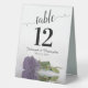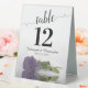 These tent signs will not only help your guests find their tables, they'll also make your wedding reception more beautiful. The design is both elegant and romantic featuring a single dusty purple coloured rose lying on its side reflecting in water with waves and ripples. The title is in lacy script calligraphy with bold numbers so your guests can easily find the right table. There is room for the names of the couple and the wedding date.