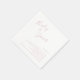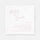 Simple wedding napkins with your names in an elegant handwritten script at the top left and a list of fun facts about you in dusty rose pink. The chic hand lettering adds a romantic touch to this minimalist design.