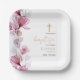 Elegant Dusty Rose Transparent Floral Baptism Paper Plate