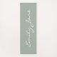This custom yoga mat features your name in beautiful handwritten script lettering on a stylish sage green background. Great gift idea.