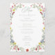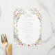 Step into a world of timeless elegance with our exquisite Baroque wildflower wedding menu. A wreath of soft pastel watercolor blooms surrounds the menu details which appear in dusty sage green, in sophisticated harmony. Perfect for couples who seek an invitation that whispers luxury, romance, and the charm of old-world grandeur. Let your wedding begin with a design as breathtaking as the day itself. Created by Simply Farmhouse Press.
