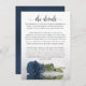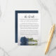 This beautiful wedding enclosure card is designed to give you extra space for whatever information your guests may need, including website, registry, reception, travel, accommodations, or any other details. The card features a gorgeous design with a single reflecting dusty blue coloured rose and a lacy script calligraphy title reading "the details." The back is a marbled steel blue grey colour.