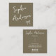 Make a polished and memorable first impression with this elegant square business card featuring a modern handwritten script name and a delicate minimalist bow illustration. Designed in a warm taupe-brown background with crisp white typography, this card blends sophistication and simplicity—perfect for creatives, entrepreneurs, stylists, consultants, boutique owners, and professionals who value timeless, clean branding.