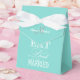 Elegant Teal Blue and White Eat Drink and be Married Wedding favour boxes. Add your name and Monogram.. Dark Grey Quatrefoil.
