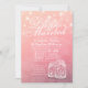 EAT Drink and Be Married Wedding Celebration / Bridal Shower Invitation Cards Templates.- Elegant Mason Jar and String Lights on Pink Floral Background.