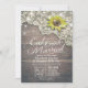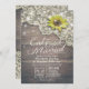 EAT Drink and Be Married Wedding Celebration Invitation Cards Templates.- Vintage Lace, Sunflower and String Lights on Rustic Wood Background.
