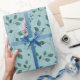 NewParkLane - Elegant Wrapping Paper, with a beautiful pattern of green leaves in watercolor againt a eggshell blue background. A simple yet elegant design for weddings, or any other festive occasion.