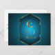 Elegant Eid Mubarak Crescent Star Gold Frame Blue Holiday Postcard