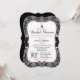 Pink, Black, and white elegant Paris, France, French glamour theme bridal wedding shower invitation on black damask pattern. Features Eiffel Tower and vintage formal design elements.