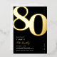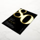 Celebrate the start of a new decade in style with our premium 80th birthday party invitations. Designed with a bold number '80' in an eye-catching serif font and real foil detailing in rich black and gold hues. This modern invitation exudes sophistication and elegance, ideal for someone who appreciates attention to detail. Make it your own with our easy-to-personalize template to elevate your milestone celebration!