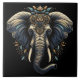 An elephant stands majestically, its head embellished with stunning decorative motifs. The blending of colours accentuates its features, creating a captivating and artistic representation.