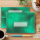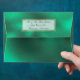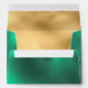 Elegant special occasion envelope done in graphics of a emerald foil look, on the outside, and a gold foil, on the inside of the envelope. Gold edged white text areas for addresses, with fully custom black text, on the backside.