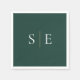 These chic modern paper napkins can be personalised with your monogram initials on an emerald green background. Designed by Thisisnotme©