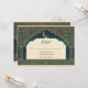 A sophisticated RSVP card to match your Emerald & Gold wedding suite. Featuring a deep dark teal background with delicate gold filigree accents and elegant typography. This modern-vintage response card is easy to customize and ensures a cohesive look for your wedding stationery.