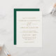 This elegant wedding invitation features a chic modern design. The front is a cream with a modern gold typography, while the reverse side is a rich emerald green with your initials in a gold typography.