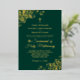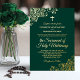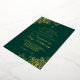 This beautiful wedding invitation is designed for a Catholic ceremony with a nuptial mass. It features real foil printing on an emerald green background. The beautiful design has fancy script lettering with ornate curls and swirls in the corners. Stylish, elegant, sophisticated, and chic, this invitation is fancy and glam.